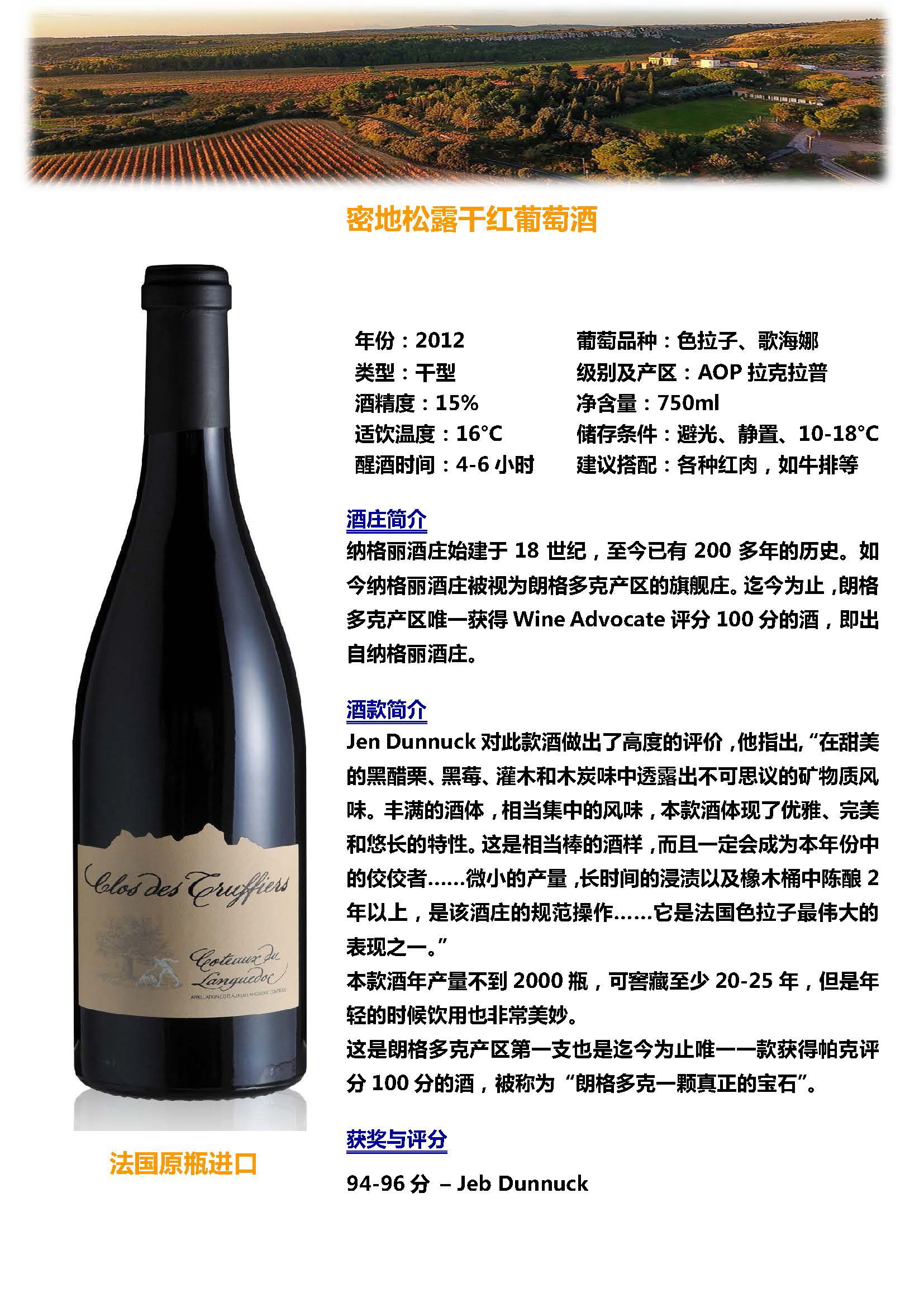 密地松露干红葡萄酒2012